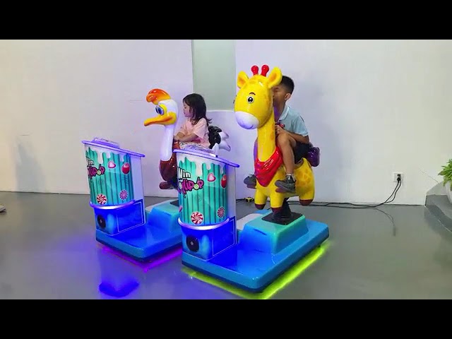 - Children should sit on the machine and hold the handrail for safety. After inserting coins, the machine will start swinging while music plays simultaneously.